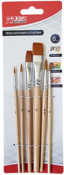 Festő ecsetkészlet 6 darabos - 4 darab hegyes körecset és 2 darab lapos ecset különböző méretekben.