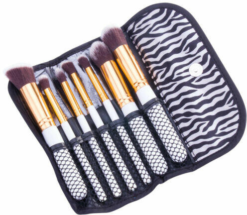 Ecsettartó TOK 7 rekeszes -  ZEBRA  Praktikus és egyedi Tok zebra mintával.  Az enyhe fényű szatén szerkezetének köszönhetően a termék könnyen tisztán tartható. A kiváló minőségű, puha anyag hatékonyan véd a véletlen sérülésektől, és minden szükséges smink-/manikűr-tartozékot rendben tart. A patentos rögzítésnek köszönhetően zárható, így nem kerül beléjük szennyeződés. Belül 7 hálóból készült rekesz található.  A műanyag szárny emellett megvédi a sörtéket a szennyeződéstől.  Tökéletes professzionális használatra és utazáshoz. A tok méretei kibontva: 22 cm x 17,5 cm