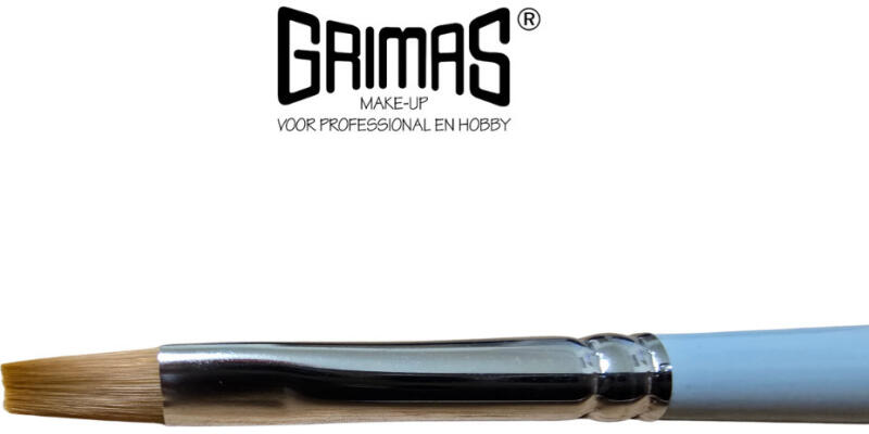 Grimas szintetikus lapos professzionális minőségű arc és testfestő ecset. A kialakításának köszönhetően ez az ecset az arc- és testfestők által egyik leggyakrabban használtlapos ecset, "egymozdulat" amelyet kifejezetten arc és testfestésre készítettek . Professzionális, puha szőrű arcfestés ecsetek, amik kitűnő minőségű és kifejezetten arc- és testfestéshez tervezték, gyártották. A Grimas arcfestő ecsetek sokáig megtartják formájukat, a sörték erősek, rugalmasak, könnyen vezethetők. Méret: