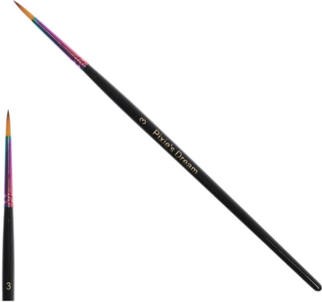 Pixie's Dream 3-as professzionális arc és testfestőkör - vonalecsettel gyönyörű indákat, készíthetsz. Minőségi escet, mellyel könnyű a vonalvezetés. Vékony és vastag vonalak, inda festéséhez, kontúrozáshoz. Méretek: Ecset teljes hosszúsága: 18,5 cm Sörte hosszúsága: 12 mm Sörte szélessége: 0,3 mm
