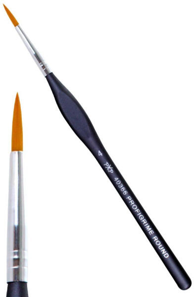 Jellemzői: PXP Professional Colors ergonomikus profigrim szintetikus kerek, hegyes professzionális minőségű arc és testfestő ecset. A kerek kialakítású ecsetek az arc- és testfestők által egyik leggyakrabban használt ecsetek. Professzionális, puha szőrű arcfestés ecsetek, amik kitűnő minőségű és kifejezetten arc- és testfestéshez tervezték, gyártották. Ezek a legjobbak a vonalvezetéshez, keskeny kontúr, indák festéséhez. Ezen felül kiválóan használható indás dekoráció, cica, tigris, egyéb bajusz rajzolásához, formák kontúrózásához. A vastagabb ecsettel virágszirmok kicsi és nagy méretben, állati foltok, nagyobb formák, illetve vastag vonalak is kitűnően festhetők vele. A PXP kerek hegyes ecsetek sokáig megtartják formájukat, a sörték erősek, rugalmasak, könnyen vezethetők. Méret: 4-es
