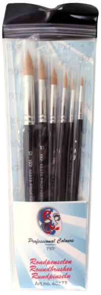 PXP Professional Colors 6 darab különböző méretben, hegyes kerek, szintetikus arc és testfestő profigrime ecset szett.