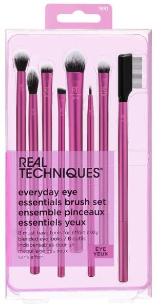 Egy szett, amiben mindent megtalálsz a tökéletes szemsmink elkészítéséhez. Akár hétköznapi natúr vagy bulis füstös szemsminket készítenél, a Real Techniques Everyday Eye Essentials ecsetkészlettel ezt könnyedén megteheted. A 8 professzionális minőségű, Ultraplush® szintetikus szálakat tartalmazó szemfestékecset segít elsatírozni, kiemelni és tökéleteseíteni bármilyen szemsminket, amit csak elképzelsz. A szett tartalma: essential crease satírozó ecset, medium shadow közepes méretű lapos ecset, defining crease satírozó ecset, definer ferdén vágott ecset, smudge kis fejű satírozó ecset, shading nagy fejű satírozó ecset, lash separator szempilla szétválasztó eszköz, fine liner vékony tusecset.