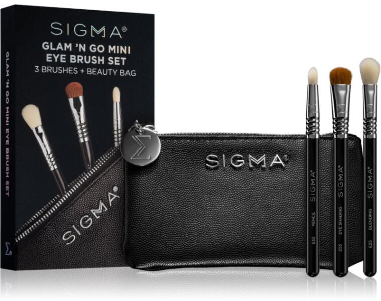 Sigma Beauty Brush Set Glam N Go, 3 db, sminkecset-készlet nőknek, A profi sminkesek nem nélkülözhetik a minőségi ecseteket a sminkelés során. Merítsen ihletet a művészetükből, és adjon esélyt az ecseteknek az ujjai helyett. A praktikus Sigma Beauty Brush Set Glam N Go sminkecsetszett magasabb szintre emeli az Ön sminkművészetét is, és lehetővé teszi bármilyen nappali vagy éjszakai look megvalósítását, mintha profi készítette volna. Ezzel a készlettel egyetlen stílusú sminkelés sem lesz elérhetetlen, akár otthon, akár esetleg utazás közben sminkel majd. A szett tartalma: mini E25 satírozó szemhéjpúderecset 1 db mini E30 kerek ecset szemhéjfestékre 1 db mini E55 árnyékoló - és satírecset 1 db mini Beauty Bag 1 db Tulajdonságok: nappali és esti sminkhez is kiváló ideális az utazáshozÖsszetétel: ráadás kicsi luxustáska Használata: A kozmetikai szett minden egyes termékét az adott termék útmutatója szerint használja.